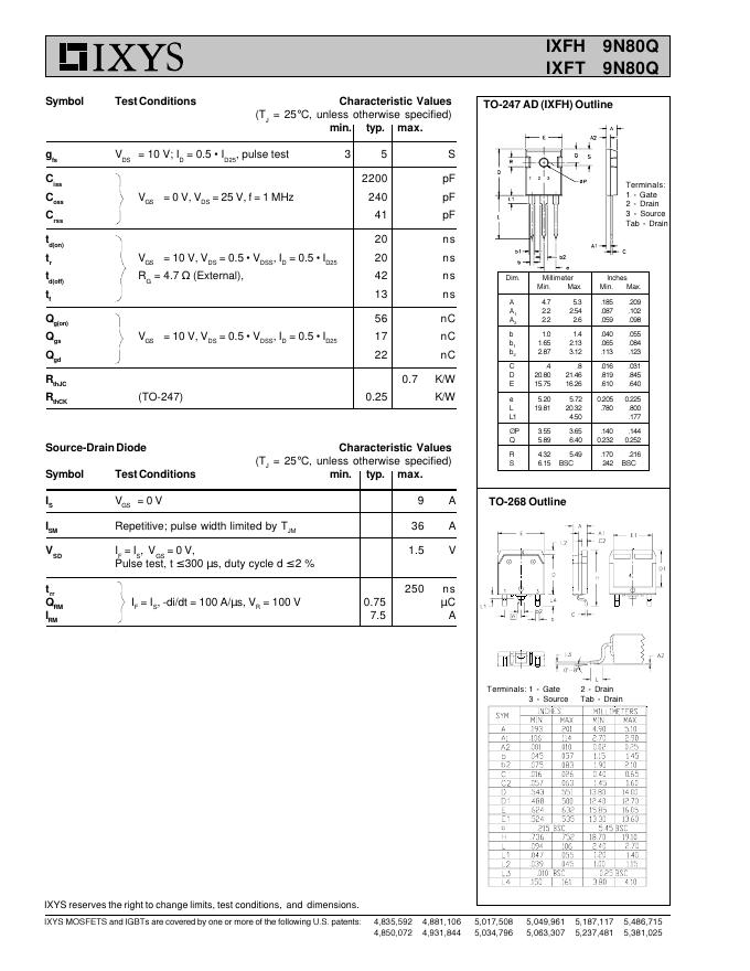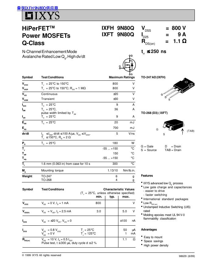 IXYS IXFH 9N80Q/IXFT 9N80Q 数据手册.pdf