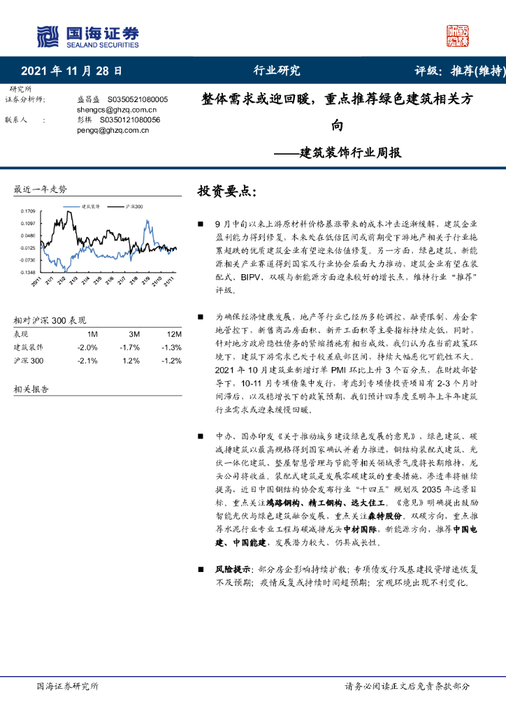 国海证券:建筑装饰行业周报:整体需求或迎回暖,重点推荐绿色建筑相关方向.pdf