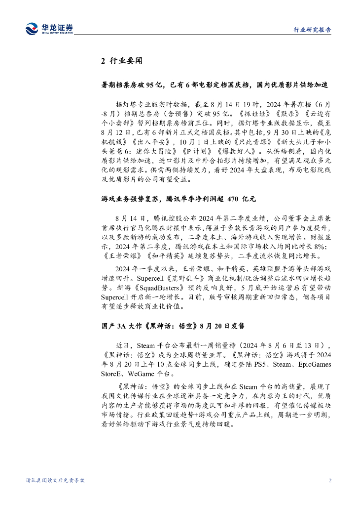 国信证券:传媒互联网行业周报:9月游戏版号发放、国庆档来临,持续看好游戏及影视行业机会