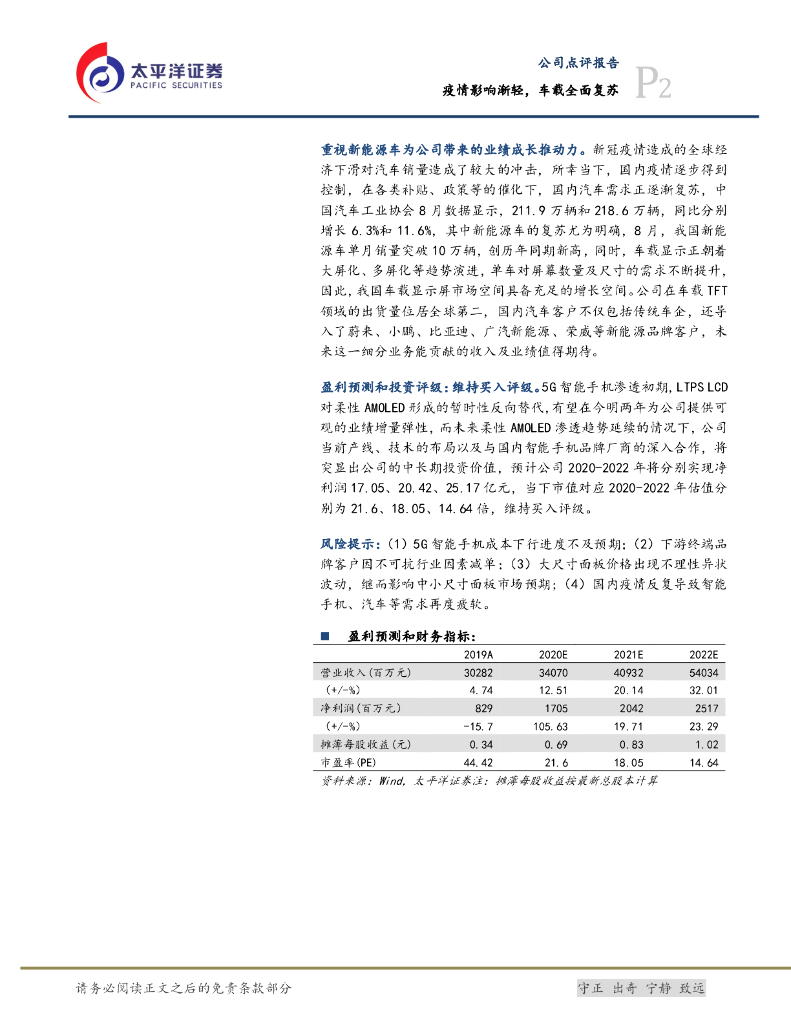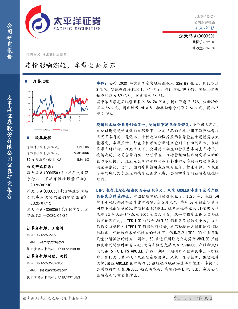 太平洋证券:深天马A(000050)-疫情影响渐轻,车载全面复苏.pdf