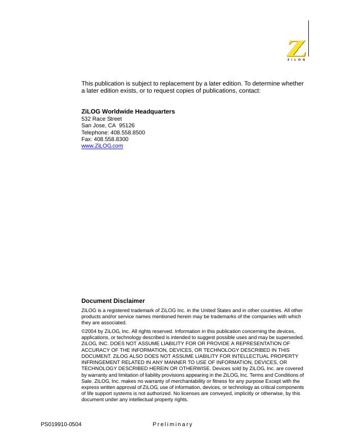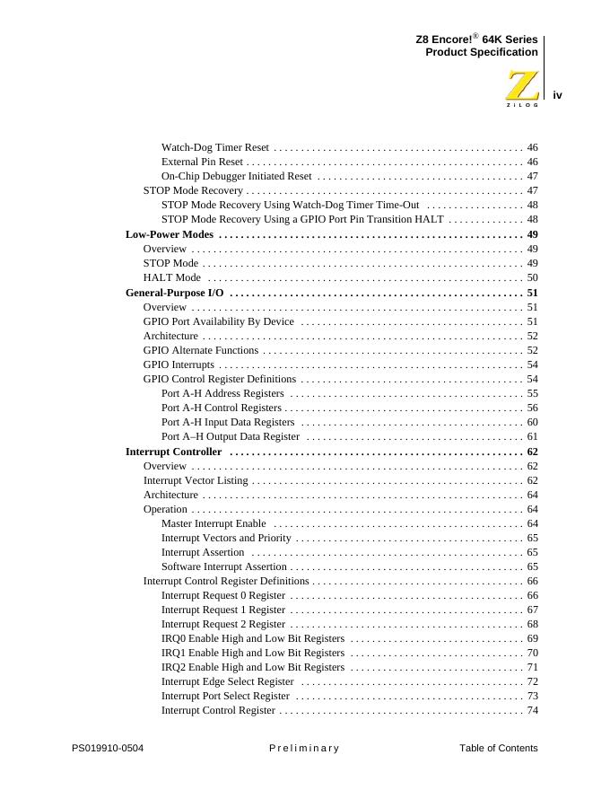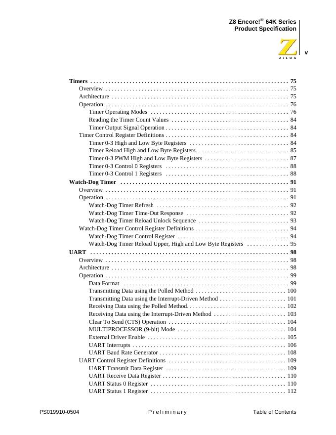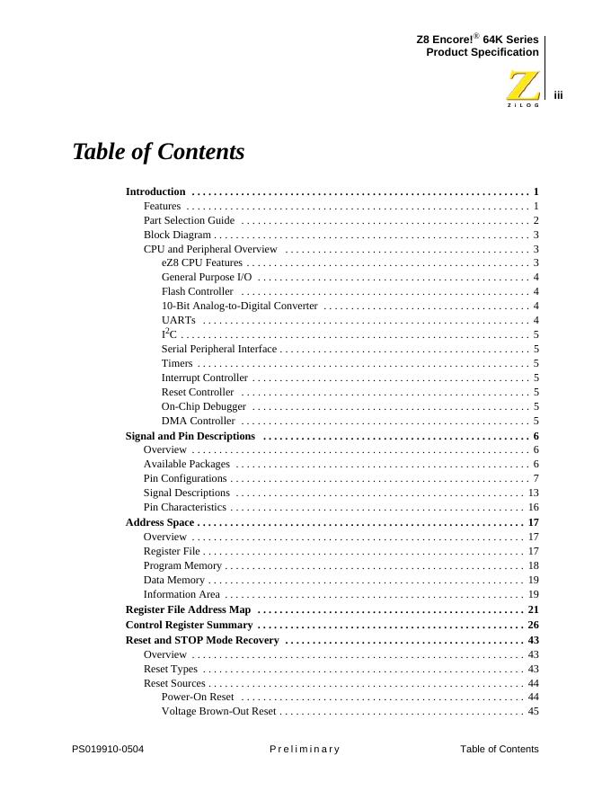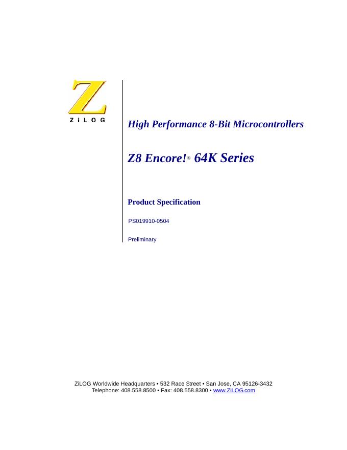 Z8 Encore 64K Series High Performance 8-Bit Microcontrollers 数据手册.pdf