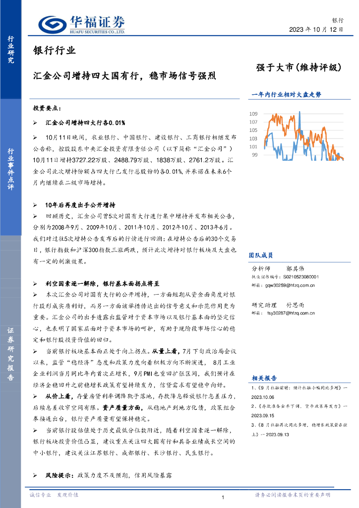 华福证券:银行行业:汇金公司增持四大国有行,稳市场信号强烈.pdf