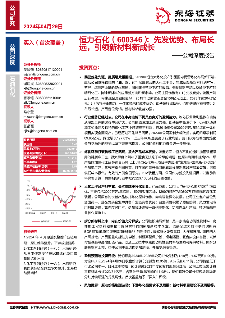 东海证券:恒力石化(600346)-公司深度报告:先发优势、布局长远,引领新材料新成长.pdf