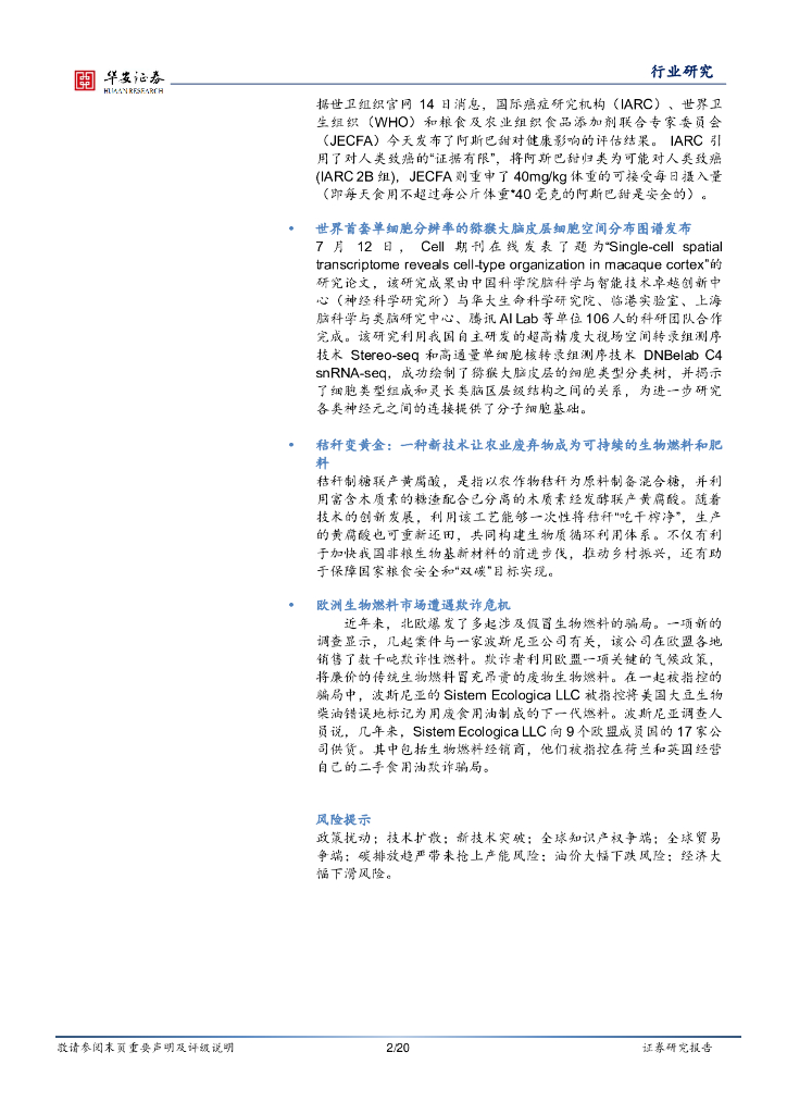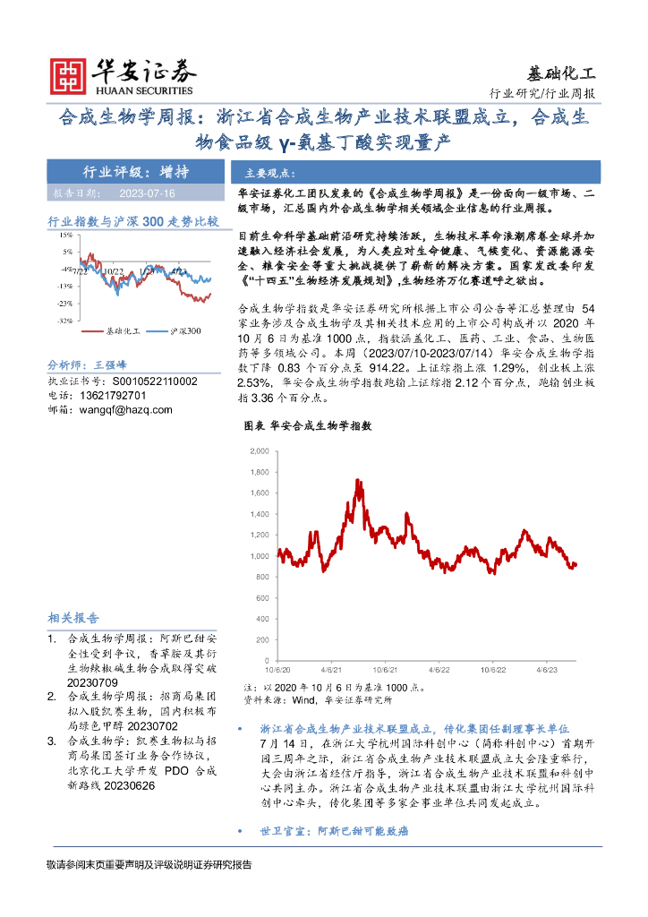 华安证券:合成生物学周报:浙江省合成生物产业技术联盟成立,合成生物食品级γ-氨基丁酸实现量产.pdf