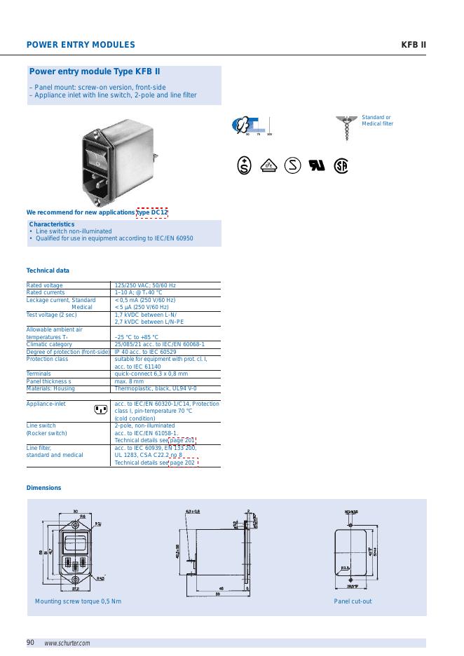 SCHURTER Power entry module Type KFB II 数据手册.pdf