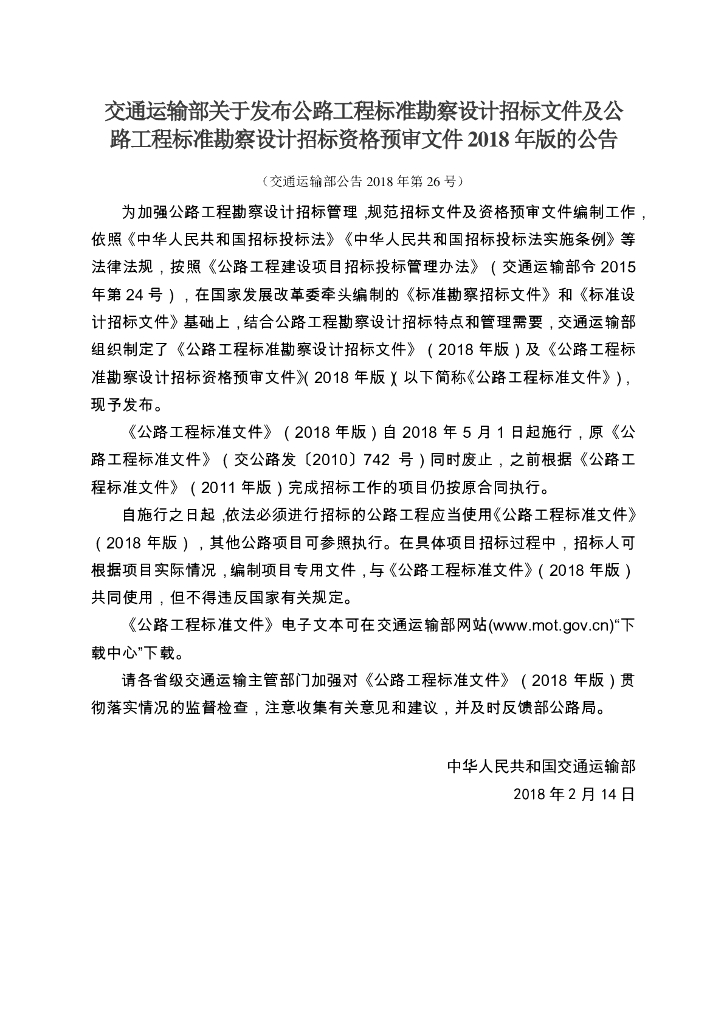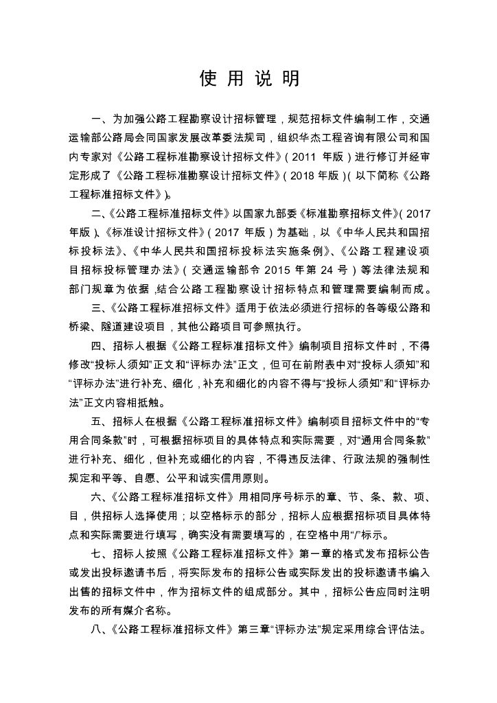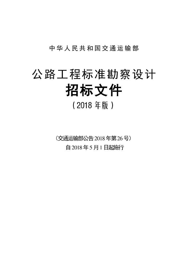 交通运输部:公路工程标准勘察设计招标文件(2018年版).pdf