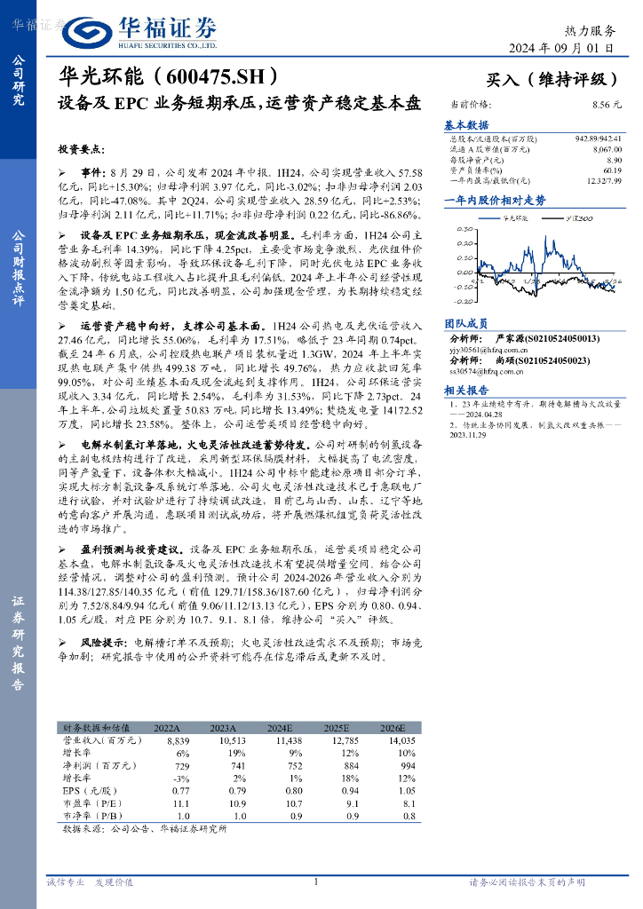 华福证券:华光环能(600475)-设备及EPC业务短期承压,运营资产稳定基本盘.pdf