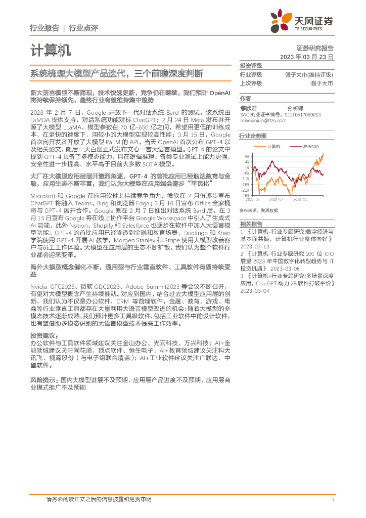 天风证券:计算机行业点评:系统梳理大模型产品迭代,三个前瞻深度判断.pdf