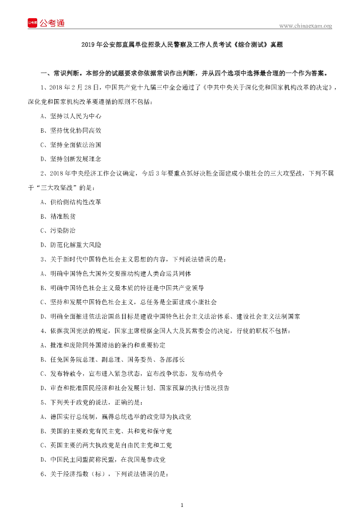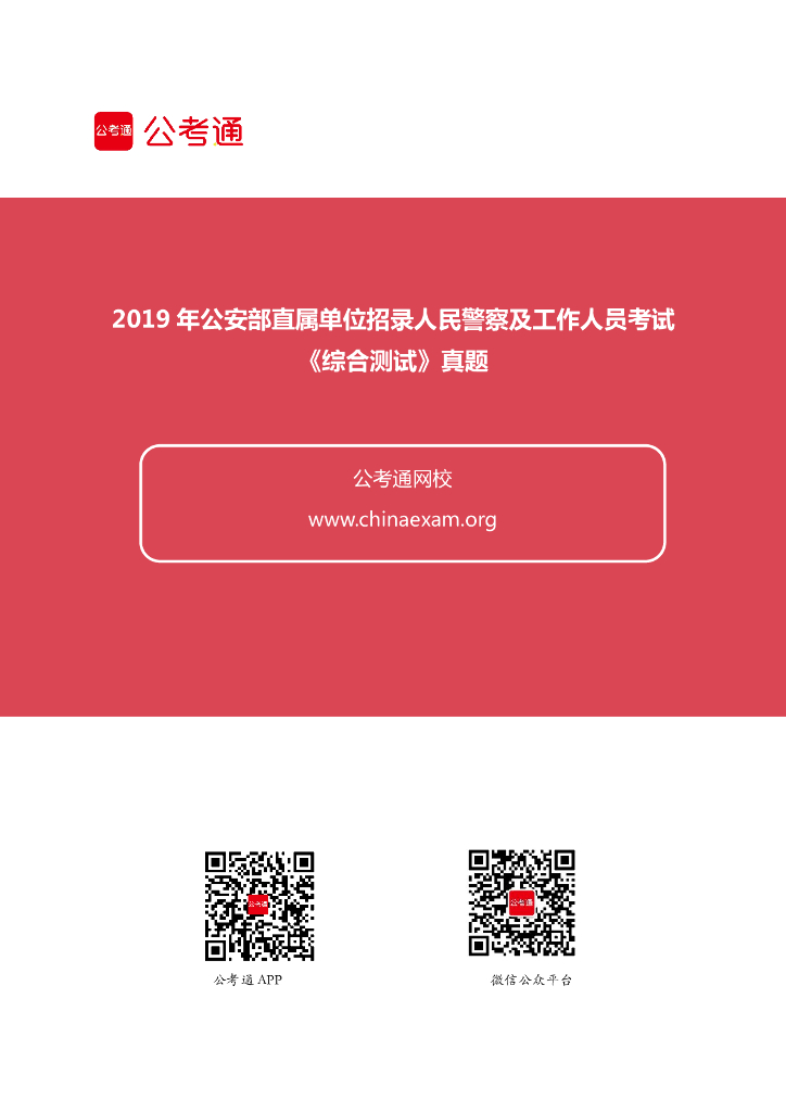 2019年公安部直属单位招录人民警察及工作人员考试《综合测试》真题.pdf