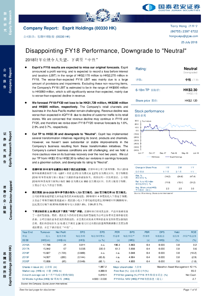 国泰君安证券(香港):思捷环球(00330)港股公司研究报告-2018财年业绩令人失望,下调至“中性”.pdf