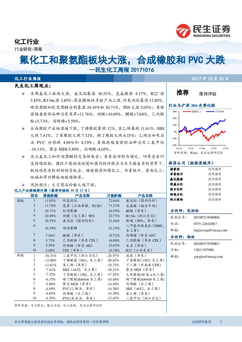 民生证券:民生化工周报:氟化工和聚氨酯板块大涨,合成橡胶和PVC大跌.pdf