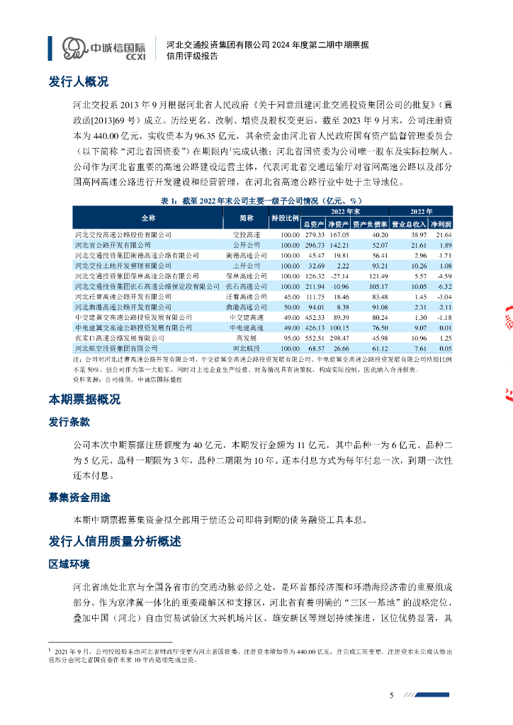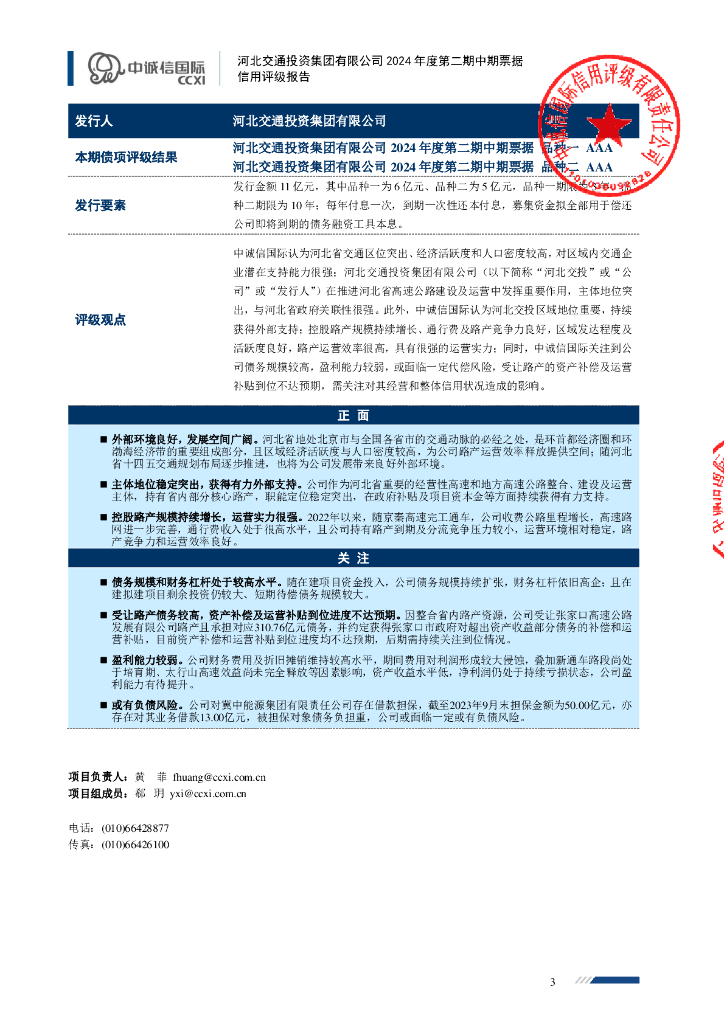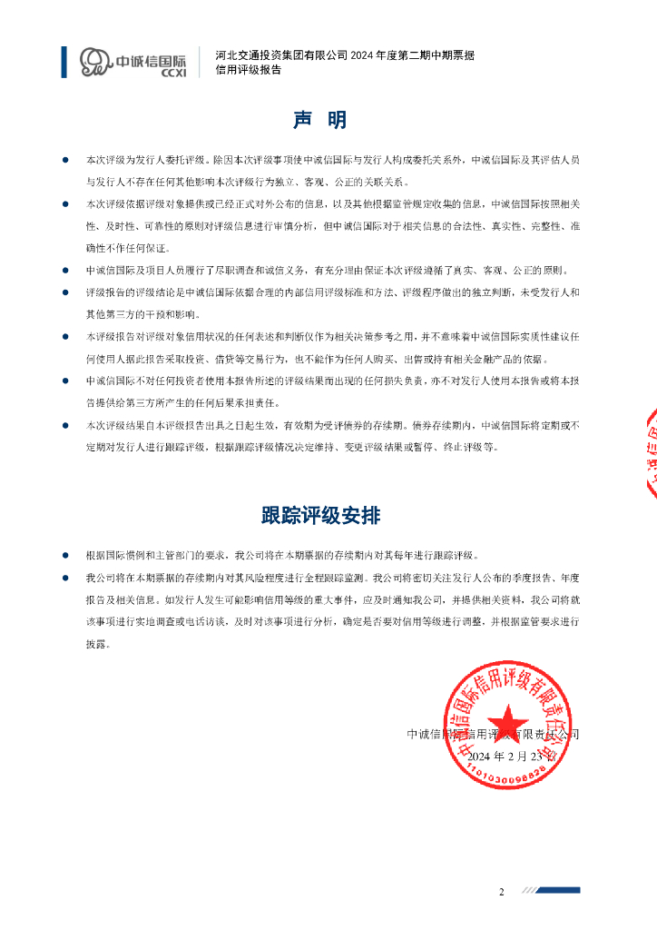 中诚信:河北交通投资集团有限公司2024年度第二期中期票据债项信用评级报告及跟踪评级安排.pdf