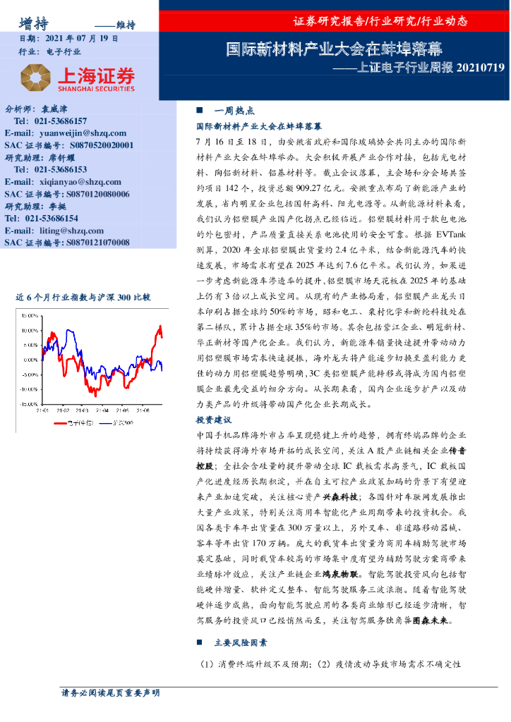 上海证券:上证电子行业周报:国际新材料产业大会在蚌埠落幕.pdf