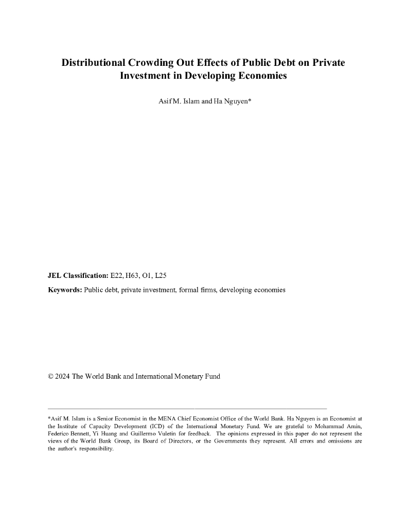 世界银行:2024发展中经济体公共债务对私人投资的分配挤出效应(英文版).pdf
