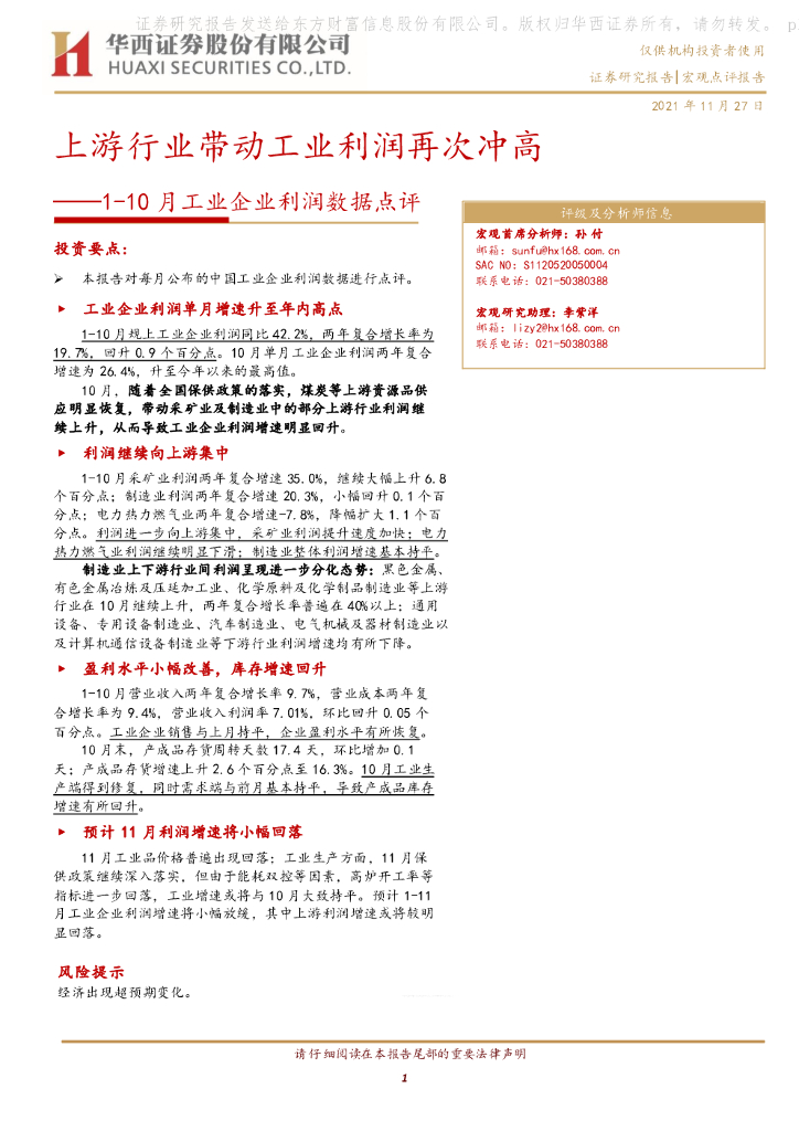 华西证券:1-10月工业企业利润数据点评:上游行业带动工业利润再次冲高.pdf