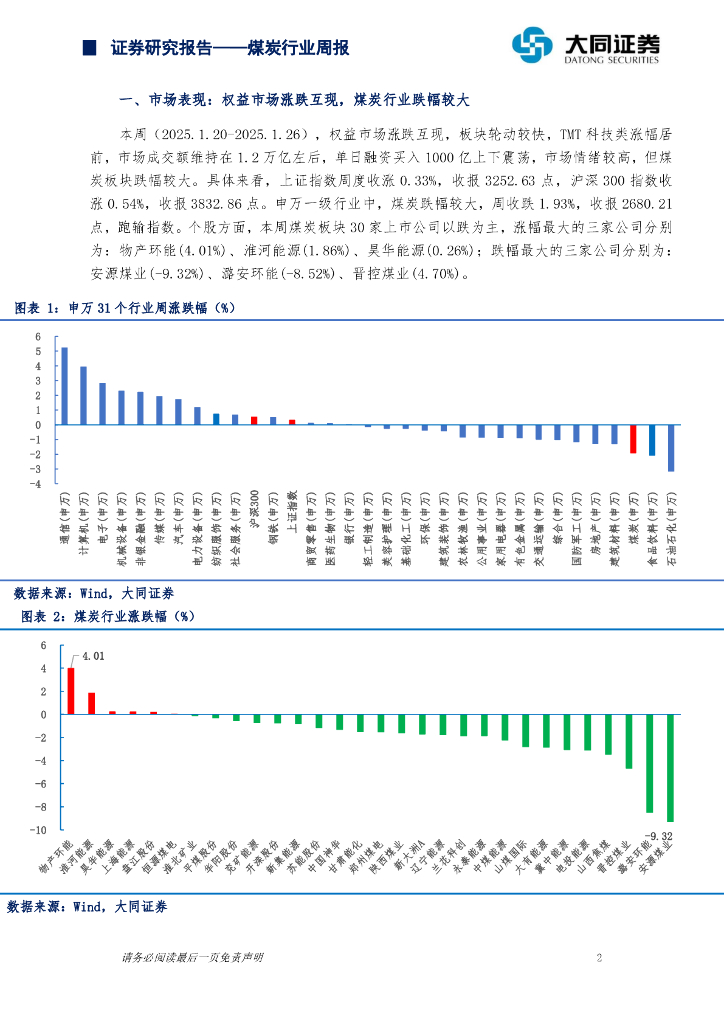 大同证券:煤炭行业周报:煤炭市场平稳运行,继续关注红利投资机会.pdf