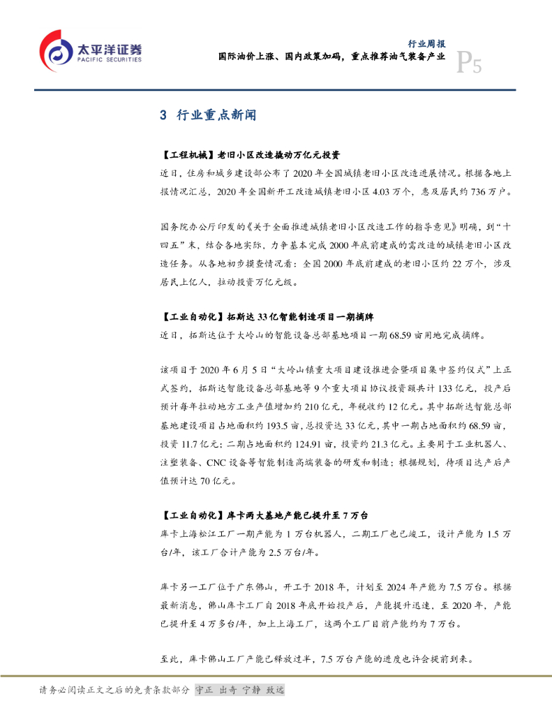太平洋证券:机械行业周报:国际油价上涨、国内政策加码,重点推荐油气装备产业.pdf