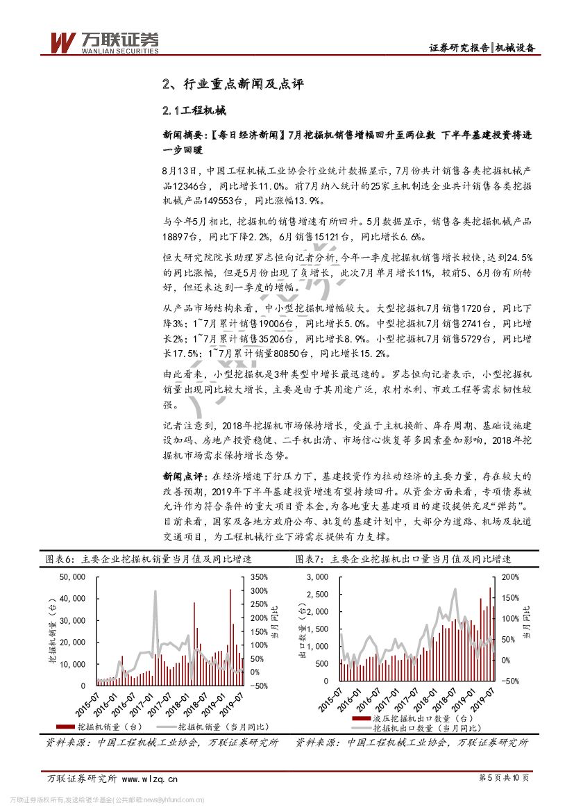 万联证券:机械设备行业周观点:挖掘机销量增速回升至11%,较5、6月明显好转.pdf