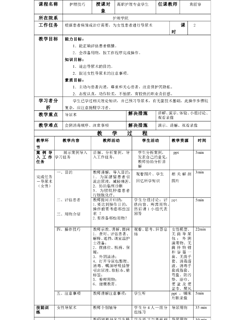 《护理技巧》电子教案-子任务二 一次性导尿术.pdf