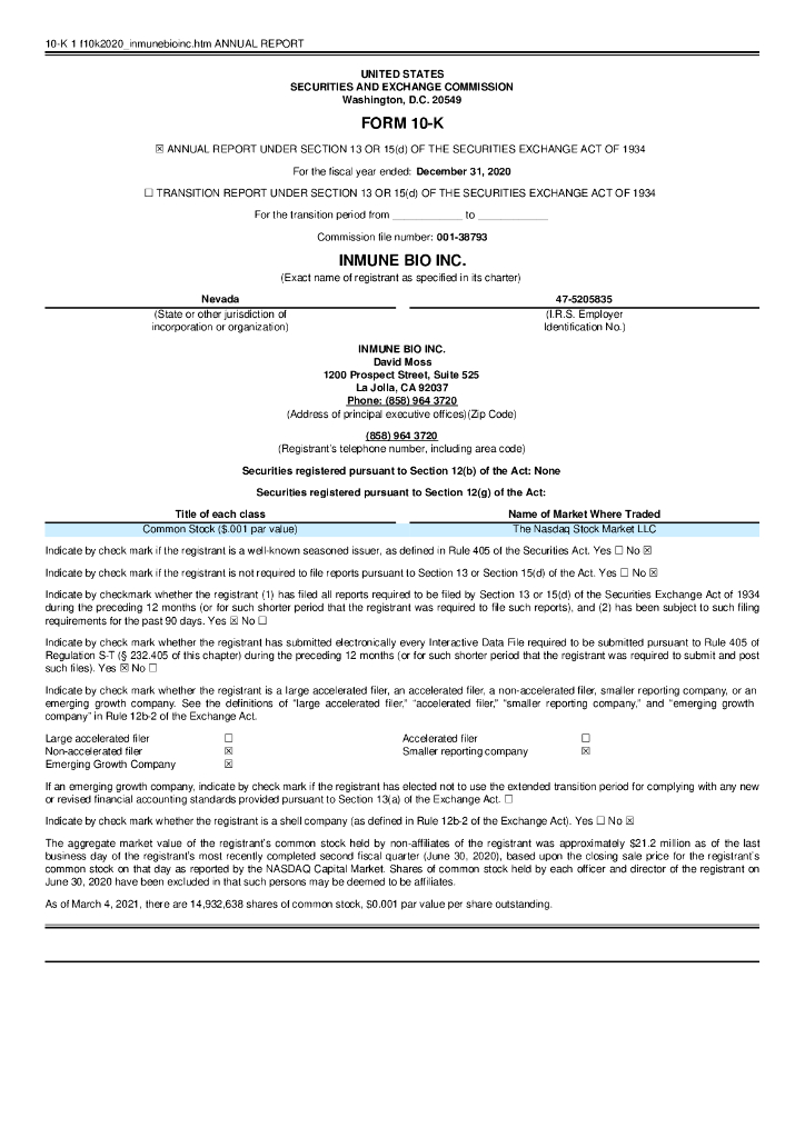 INmune Bio Inc.(INMB)2020财年年度报告(英文版).pdf