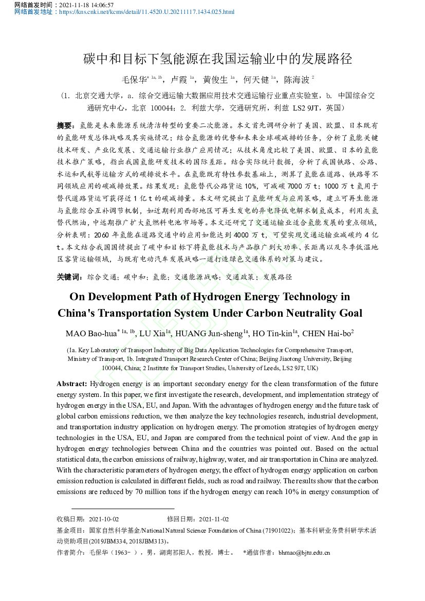 北京交通大学:碳中和目标下氢能源在我国运输业中的发展路径.pdf