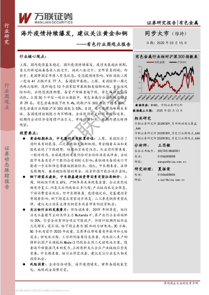 万联证券:有色行业周观点报告:海外疫情持续爆发,建议关注黄金和铜.pdf