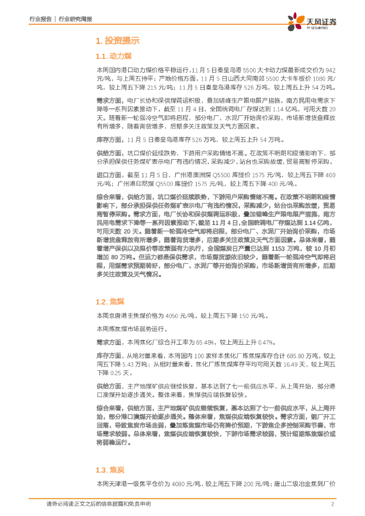天风证券:煤炭开采行业一周煤炭动向:补库时期下游库存逐步回升,供暖季来临需求预期向好.pdf