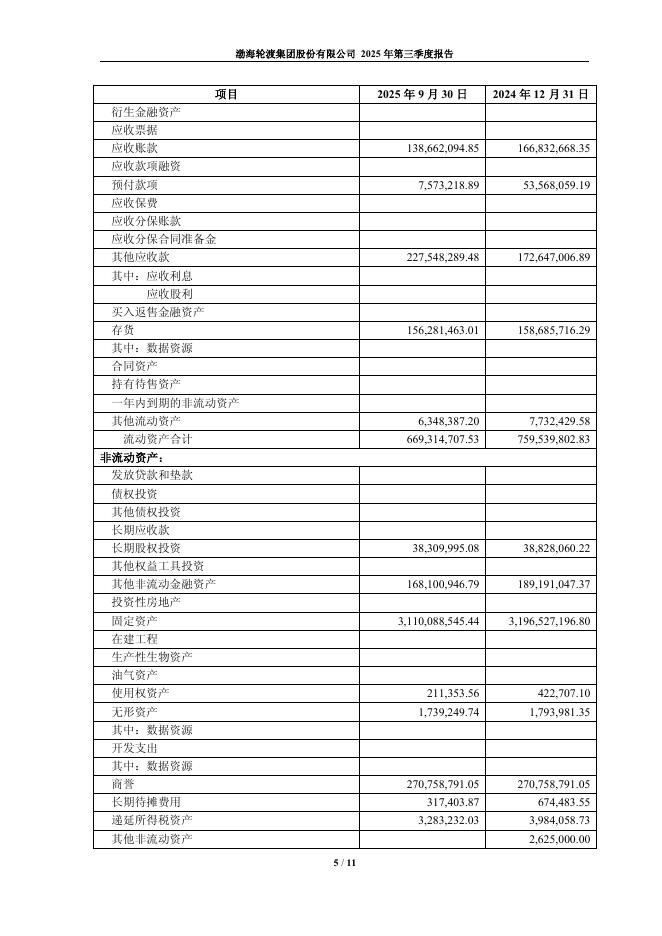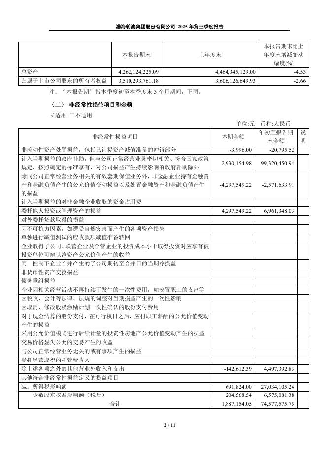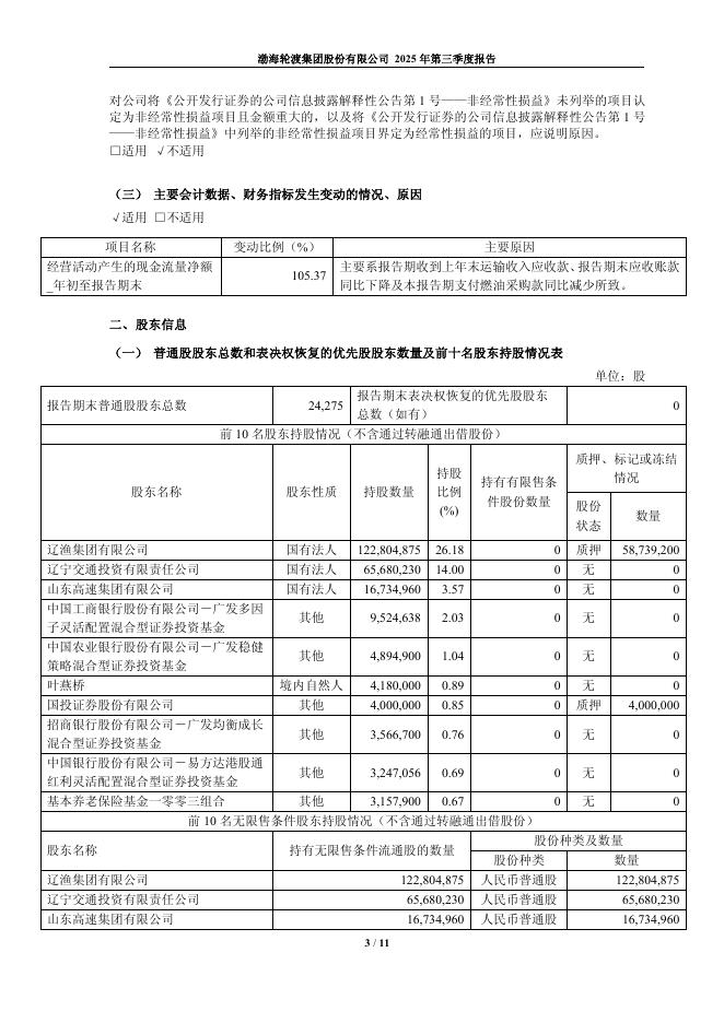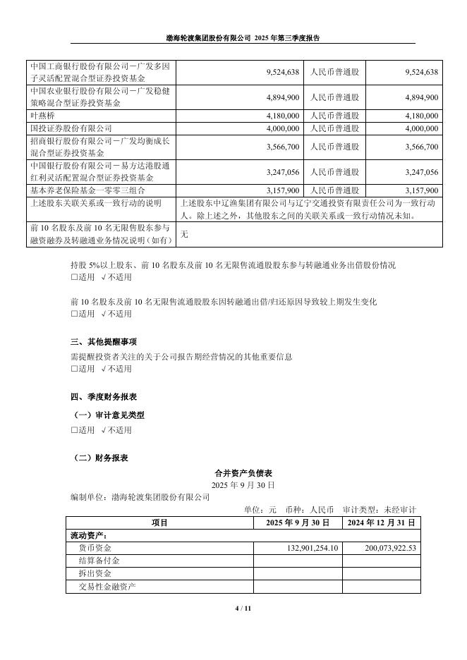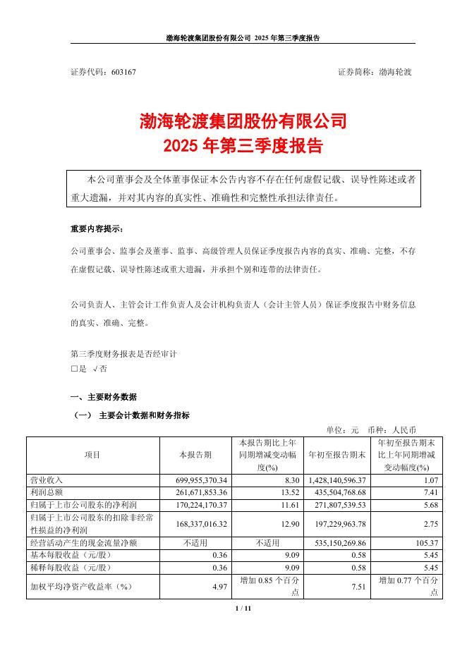 603167-渤海轮渡:渤海轮渡集团股份有限公司2025年第三季度报告.pdf