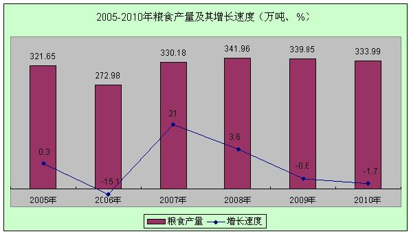 全年粮食产量333.99万吨,比上年减少5.86万吨,下降1.7%。其中,夏粮产量61.28万吨,下降24.0%;秋粮产量272.71万吨,增长5.2%。