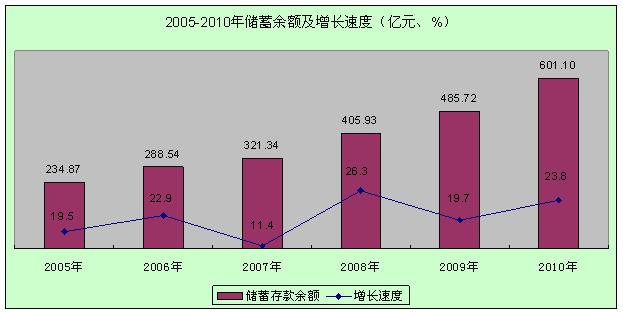 2010年全部金融机构存贷款及其增长速度