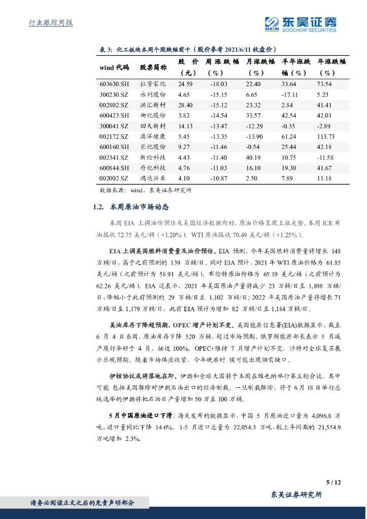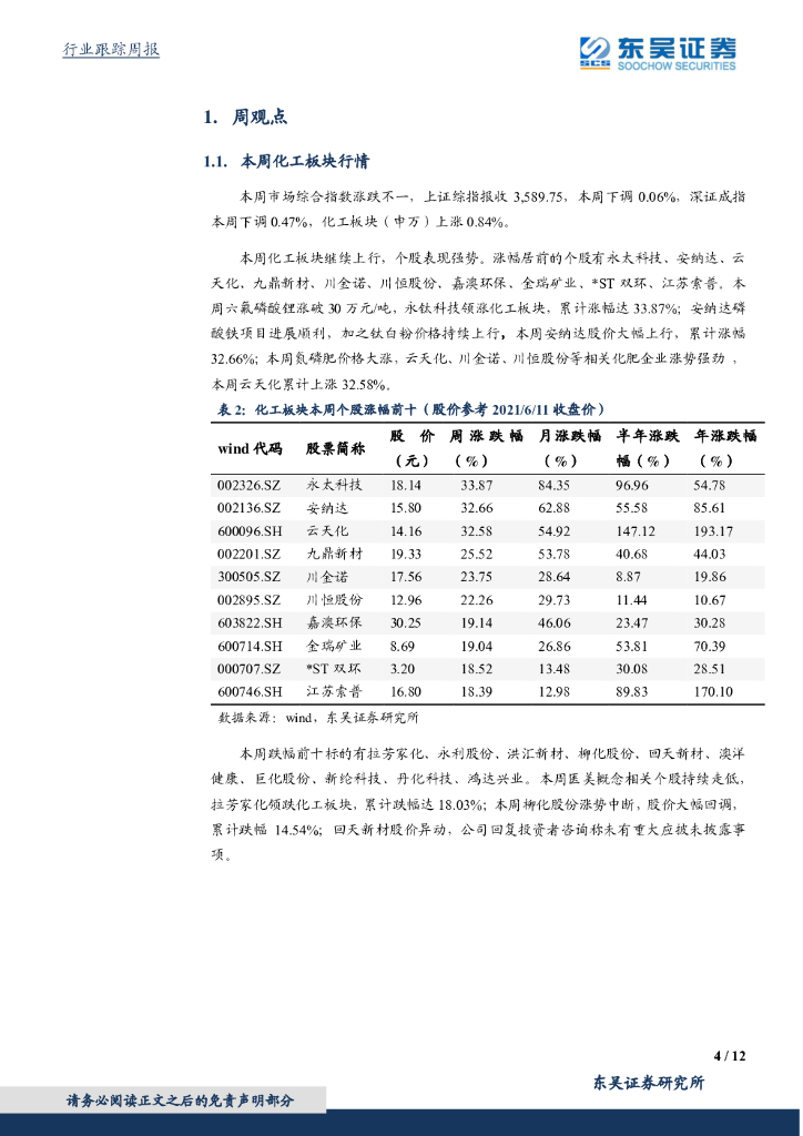 东吴证券:化工行业2021年6月第二周周报:氮磷肥价格大涨,钛白粉景气持续.pdf