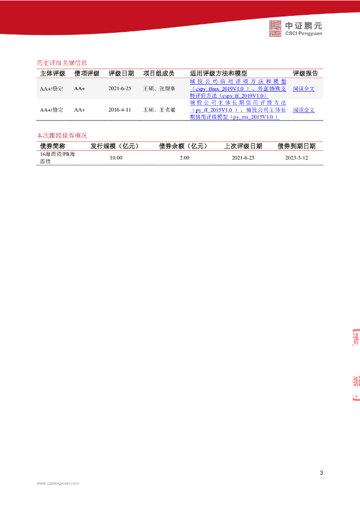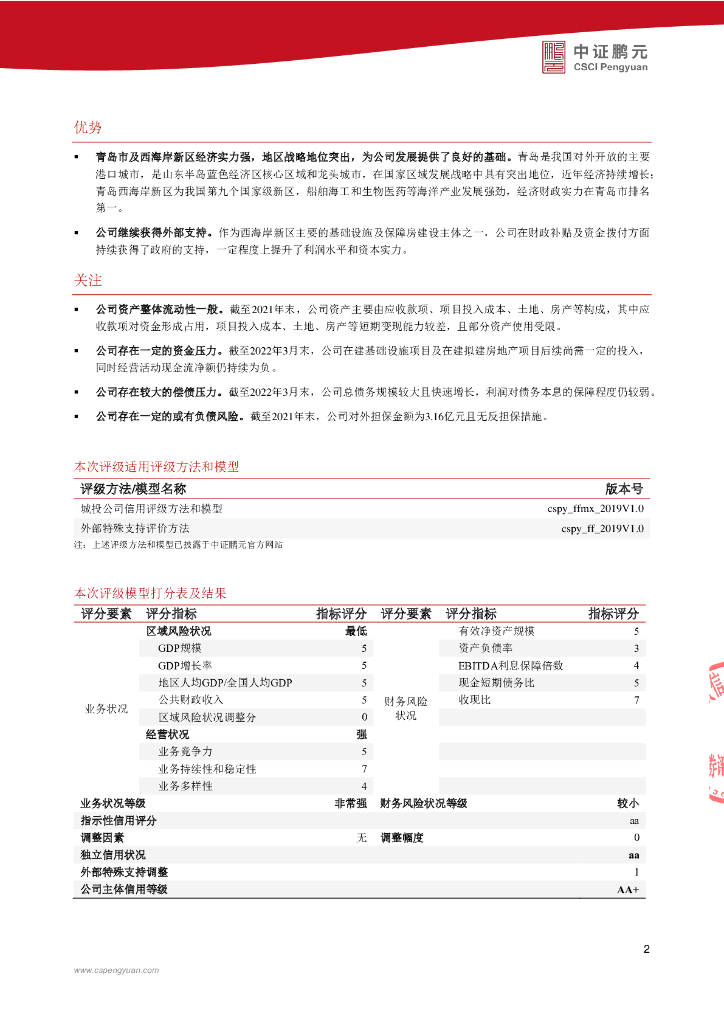 鹏元:2016年青岛海西城市投资有限公司公司债券2022年跟踪评级报告.pdf
