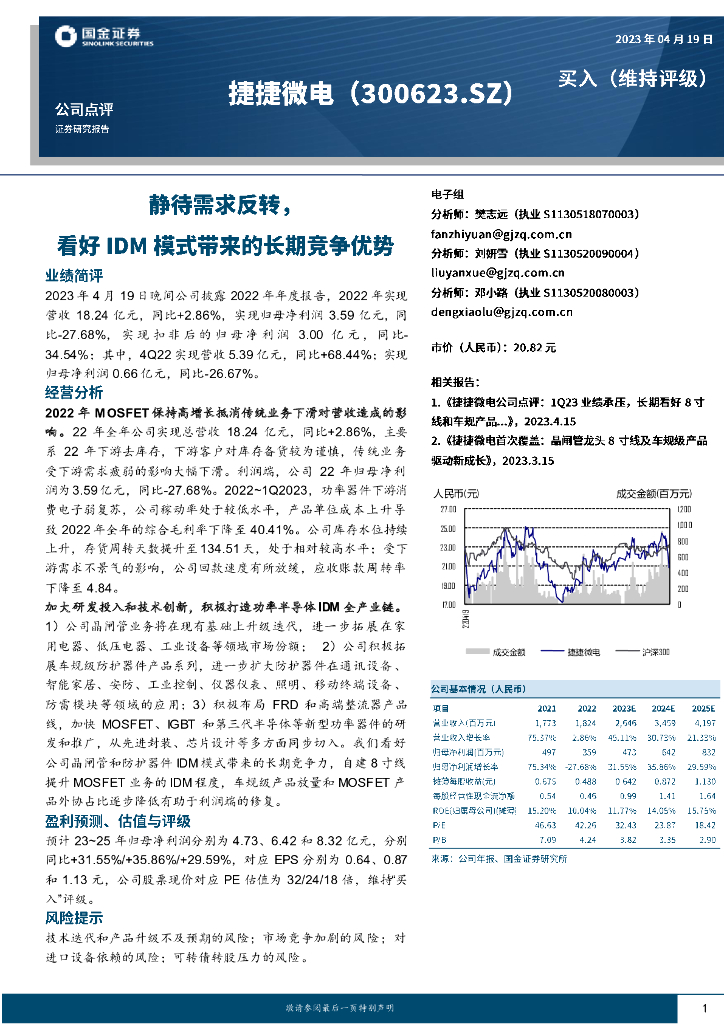 国金证券:捷捷微电(300623)-静待需求反转,看好IDM模式带来的长期竞争优势.pdf