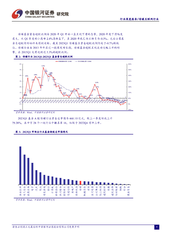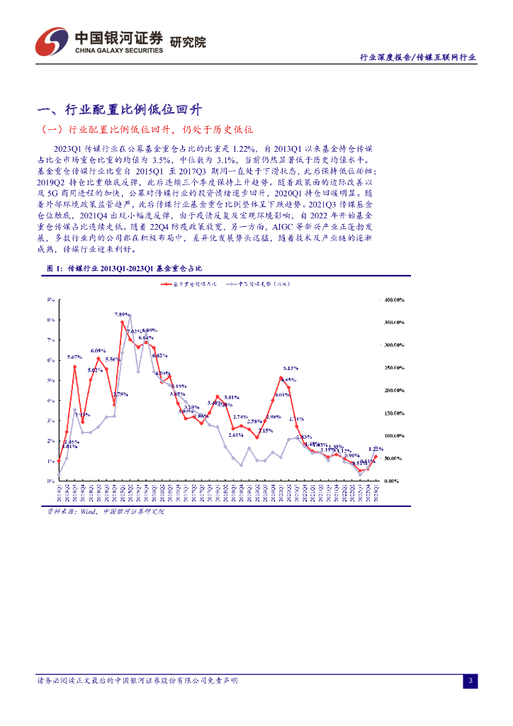 中国银河:传媒互联网行业行业深度:23Q1传媒配置升至1.22%,仍处于历史低位水平.pdf