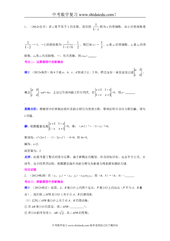 中考数学专题讲座:新概念型问题最全版.doc