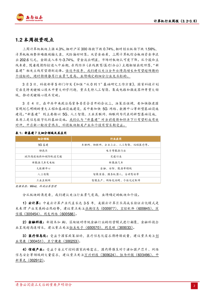西南证券:计算机行业周报:新基建带动5G、AI、工业互联网板块成为投资热点.pdf