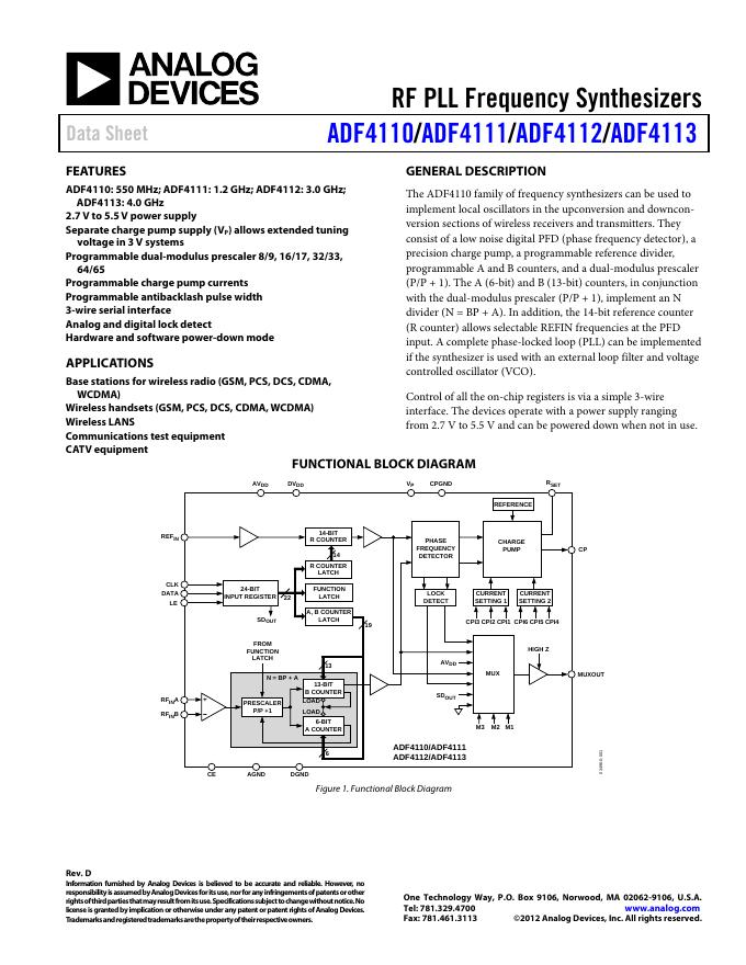 ANALOG DEVICES ADF4110 英文产品 数据手册 Rev C.pdf