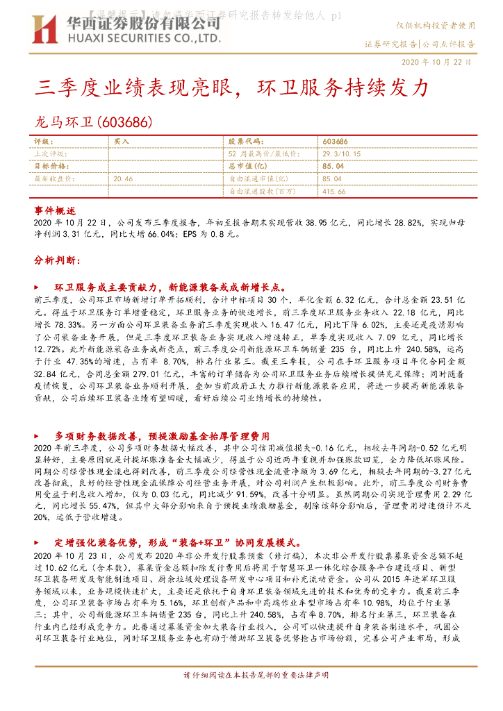 华西证券:龙马环卫(603686)-三季度业绩表现亮眼,环卫服务持续发力.pdf