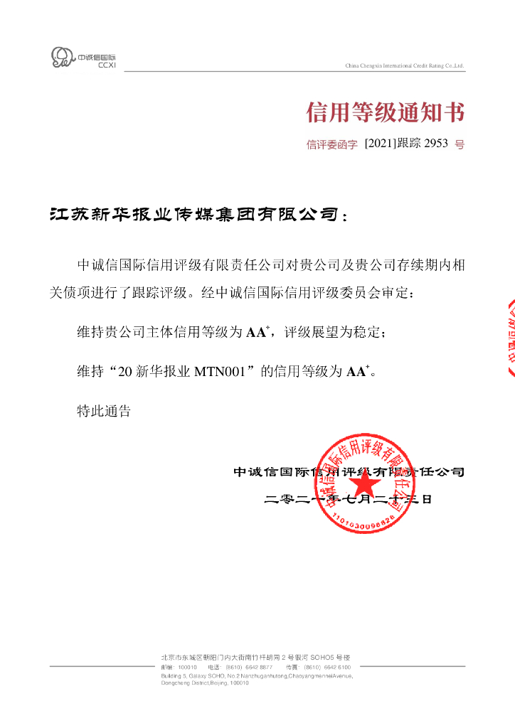 中诚信:江苏新华报业传媒集团有限公司主体信用评级报告.pdf