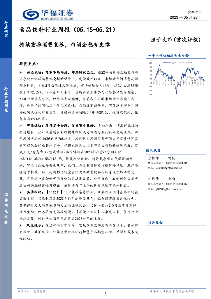 华福证券:食品饮料行业周报:持续重推消费复苏,白酒企稳有支撑.pdf