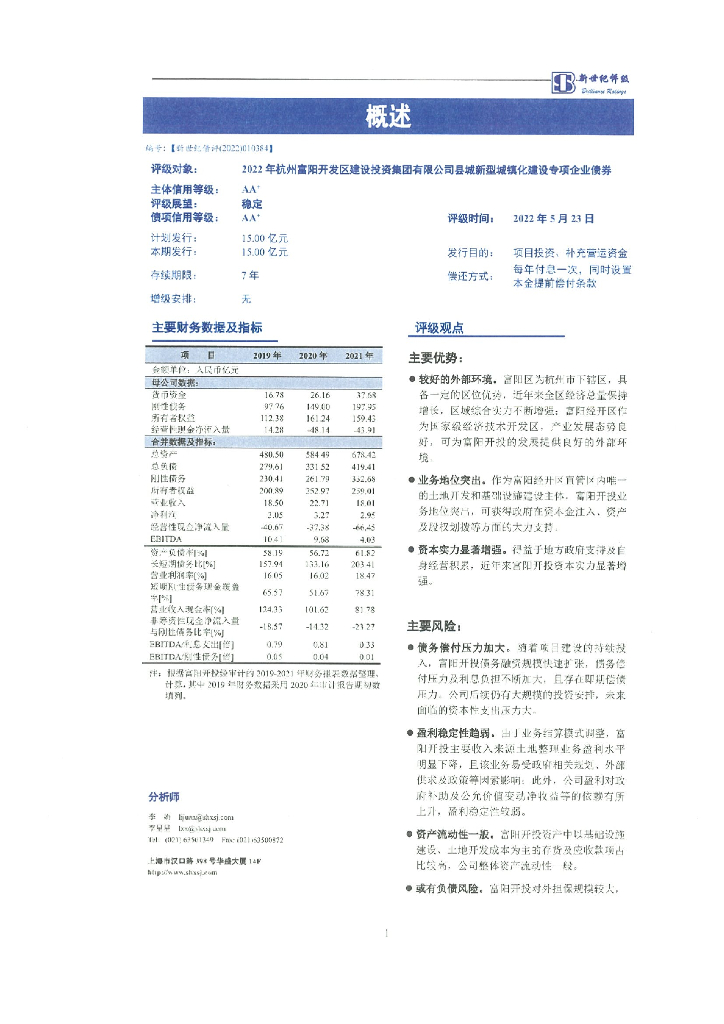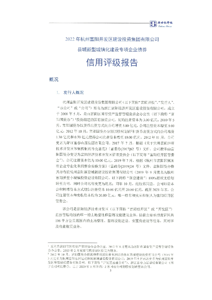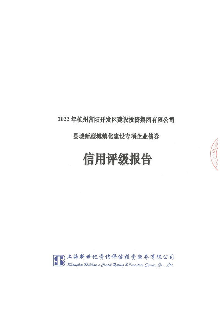 新世纪:2022年杭州富阳开发区建设投资集团有限公司县城新型城镇化建设专项企业债券评级报告.pdf
