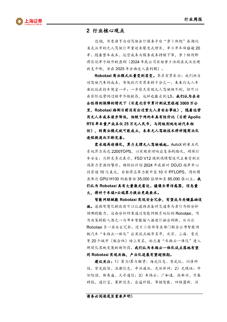 上海证券:通信行业周报:Robotaxi商业模式迎质变,算力、车联网迎催化.pdf