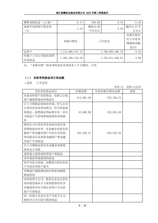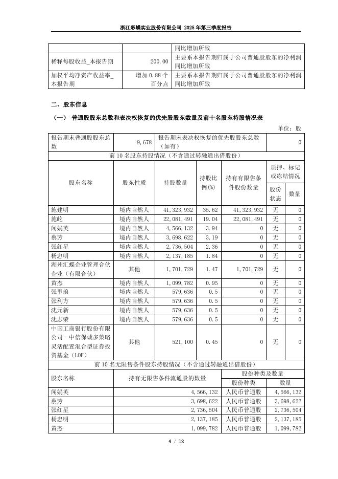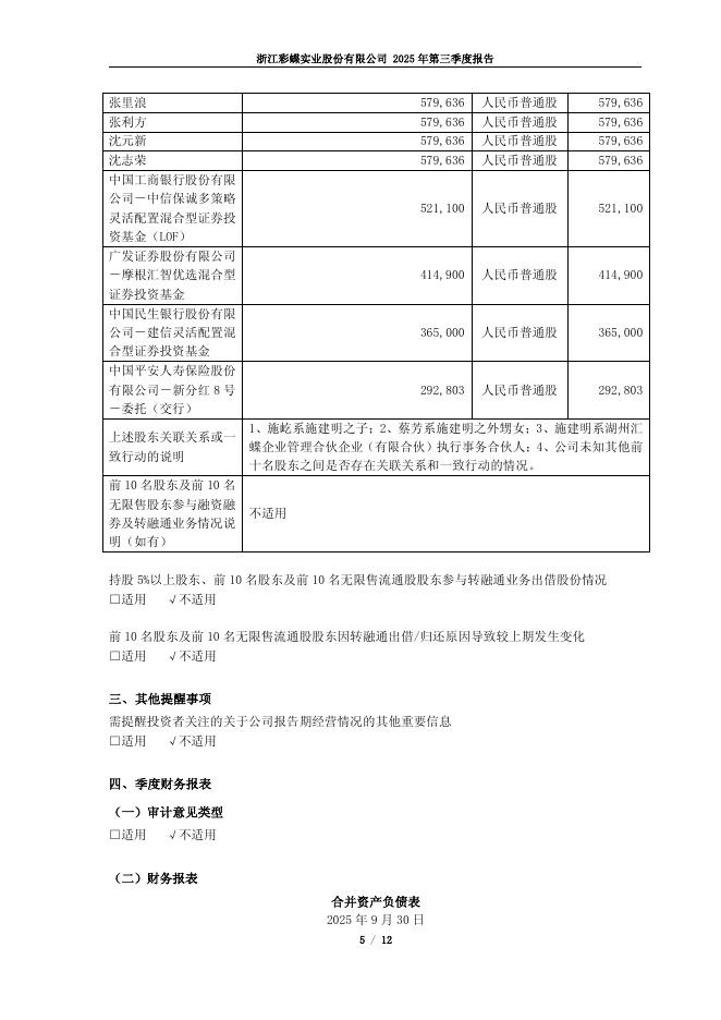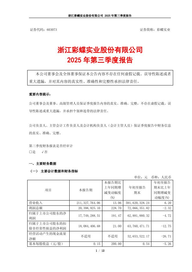 603073-彩蝶实业:浙江彩蝶实业股份有限公司2025年第三季度报告.pdf