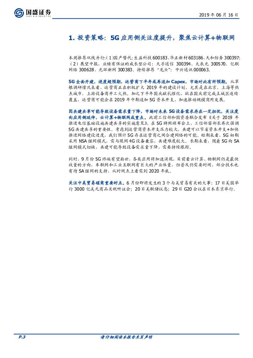国盛证券:通信行业周报:5G应用侧关注度提升,聚焦云计算+物联网.pdf