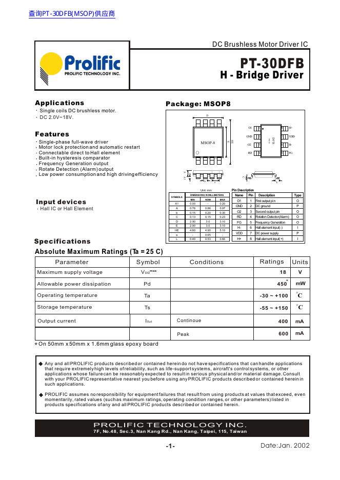 Prolific PT-30DFB 数据手册.pdf