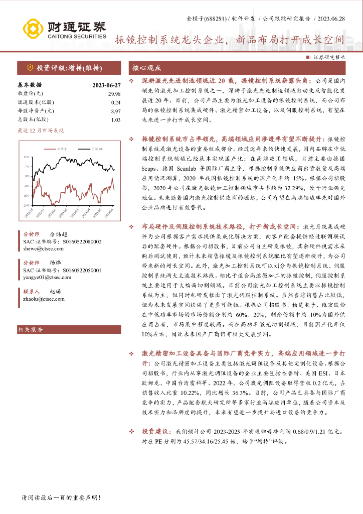 财通证券:金橙子(688291)-振镜控制系统龙头企业,新品布局打开成长空间.pdf