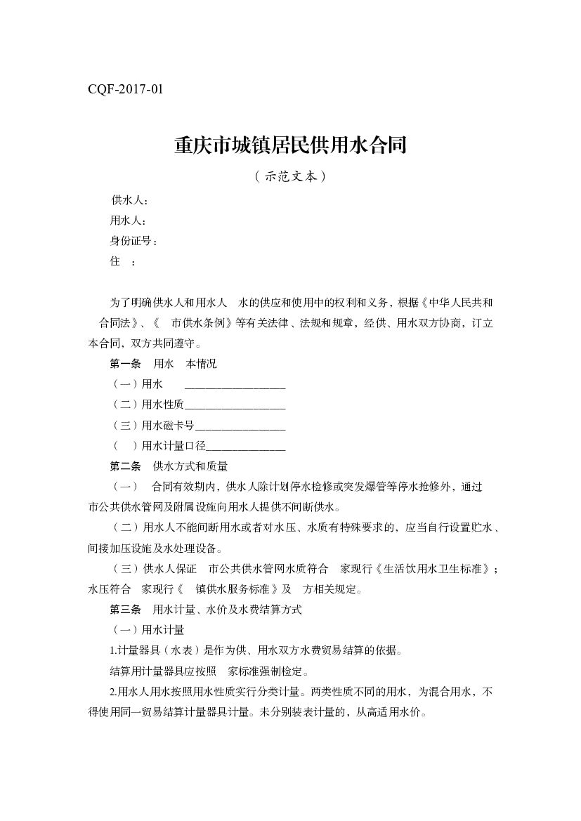 CQF-2017-01 重庆市城镇居民供用水合同(示范文本).pdf