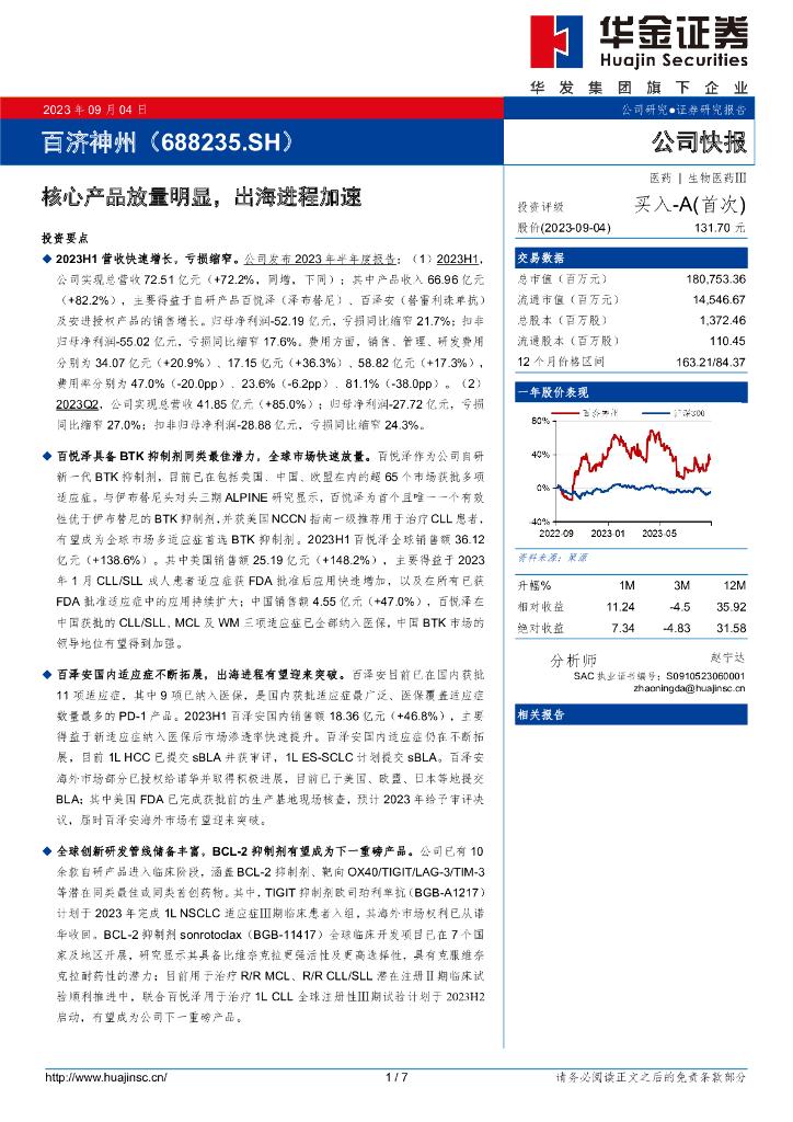 华金证券:百济神州(688235)-核心产品放量明显,出海进程加速.pdf