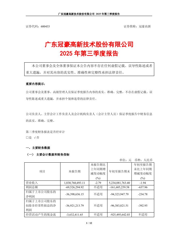 600433-冠豪高新:冠豪高新2025年第三季度报告.pdf