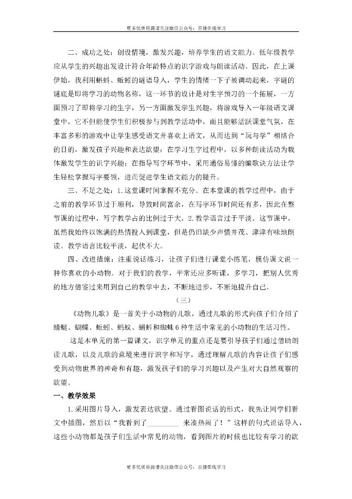一年级语文下册识字5 动物儿歌 教学反思.doc